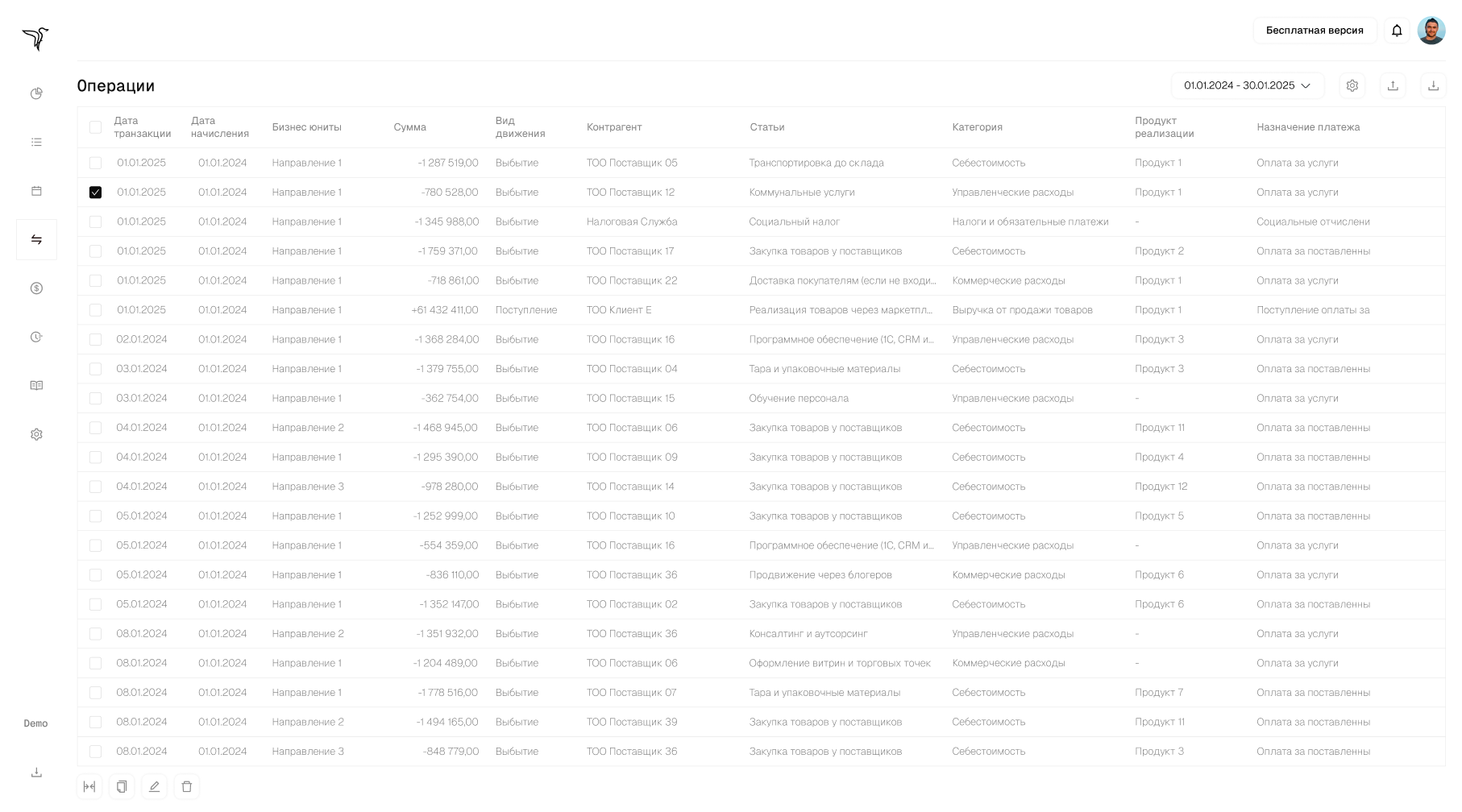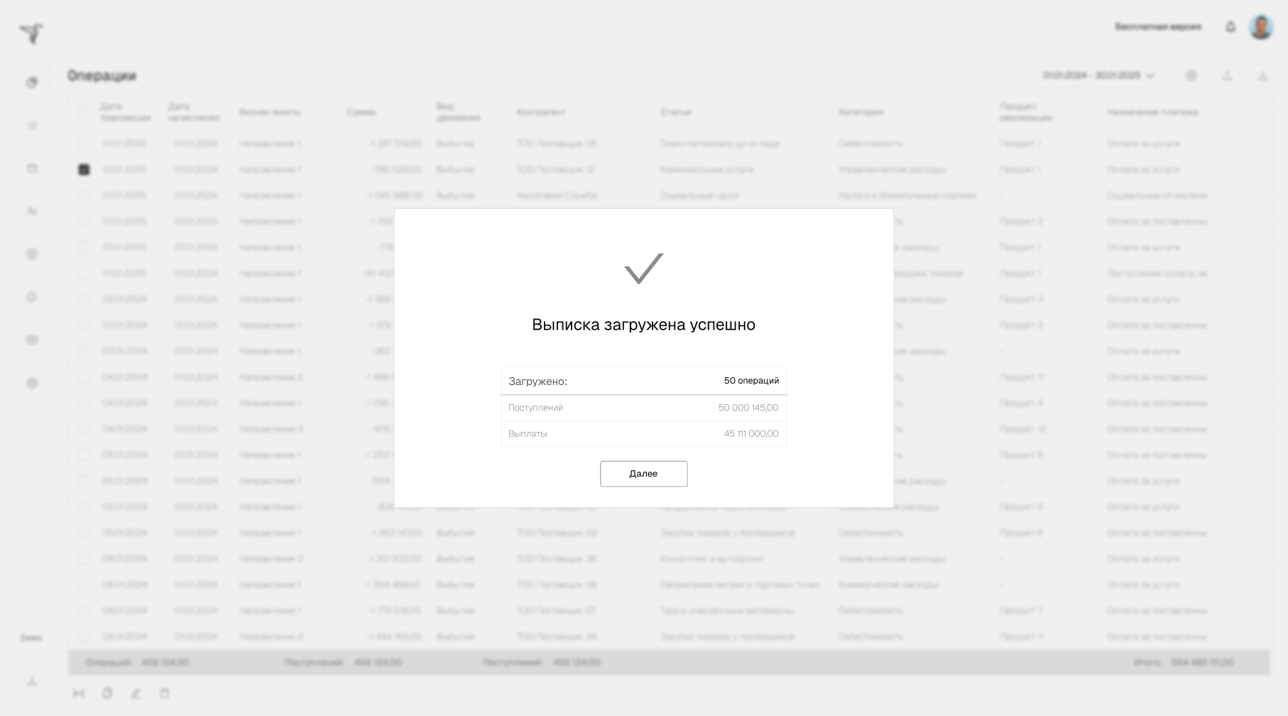 Загрузите банковскую выписку и определите статьи доходов и расходов